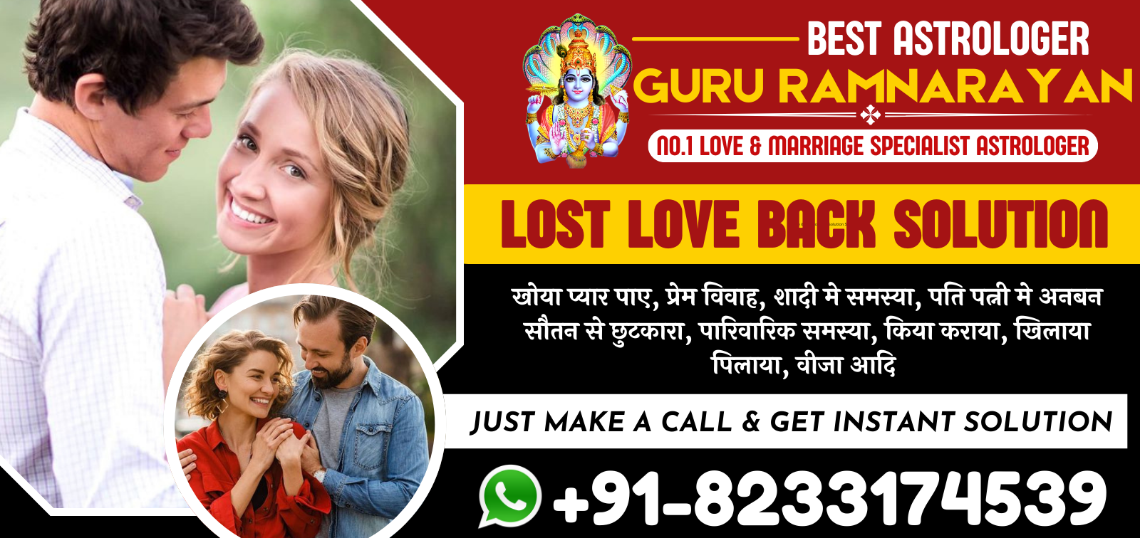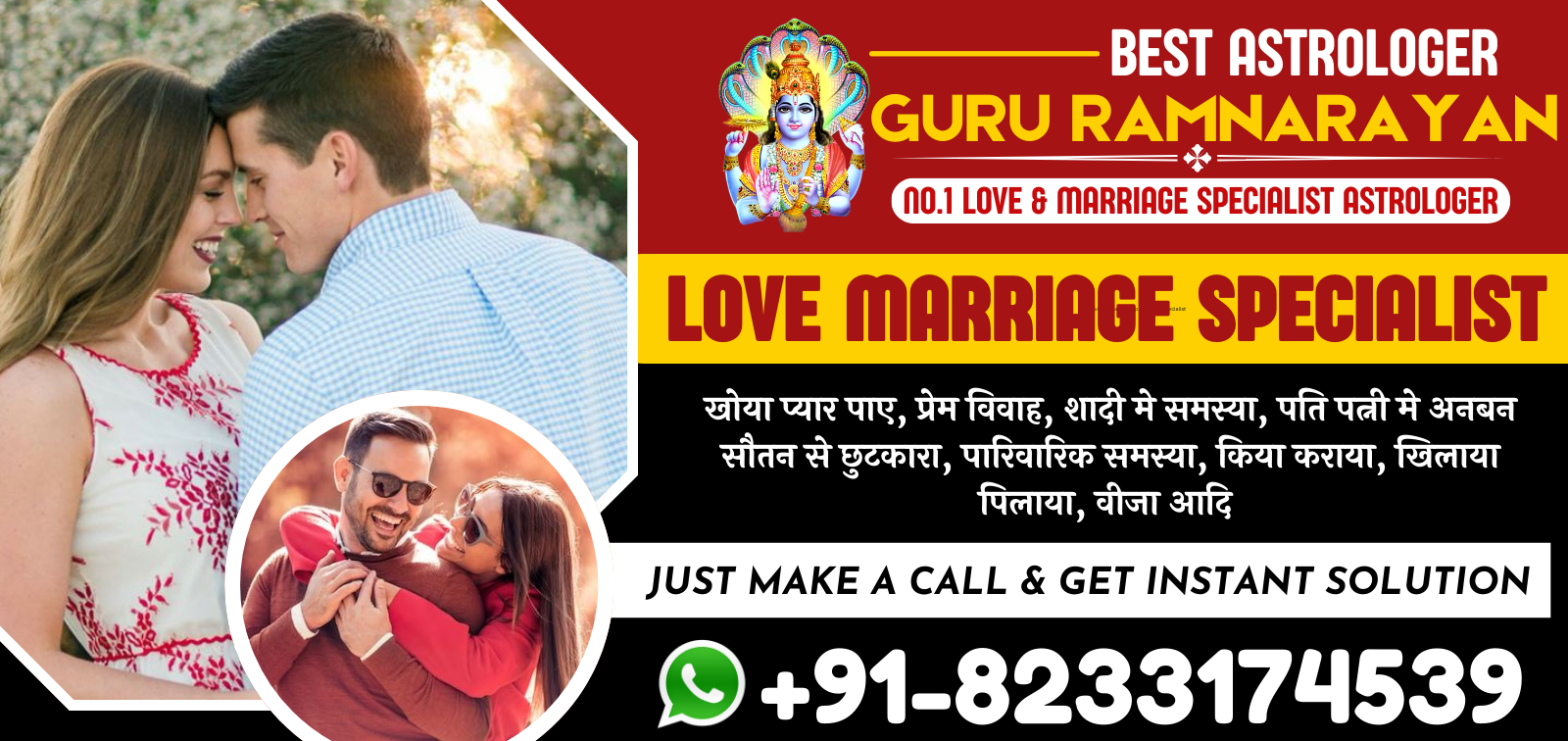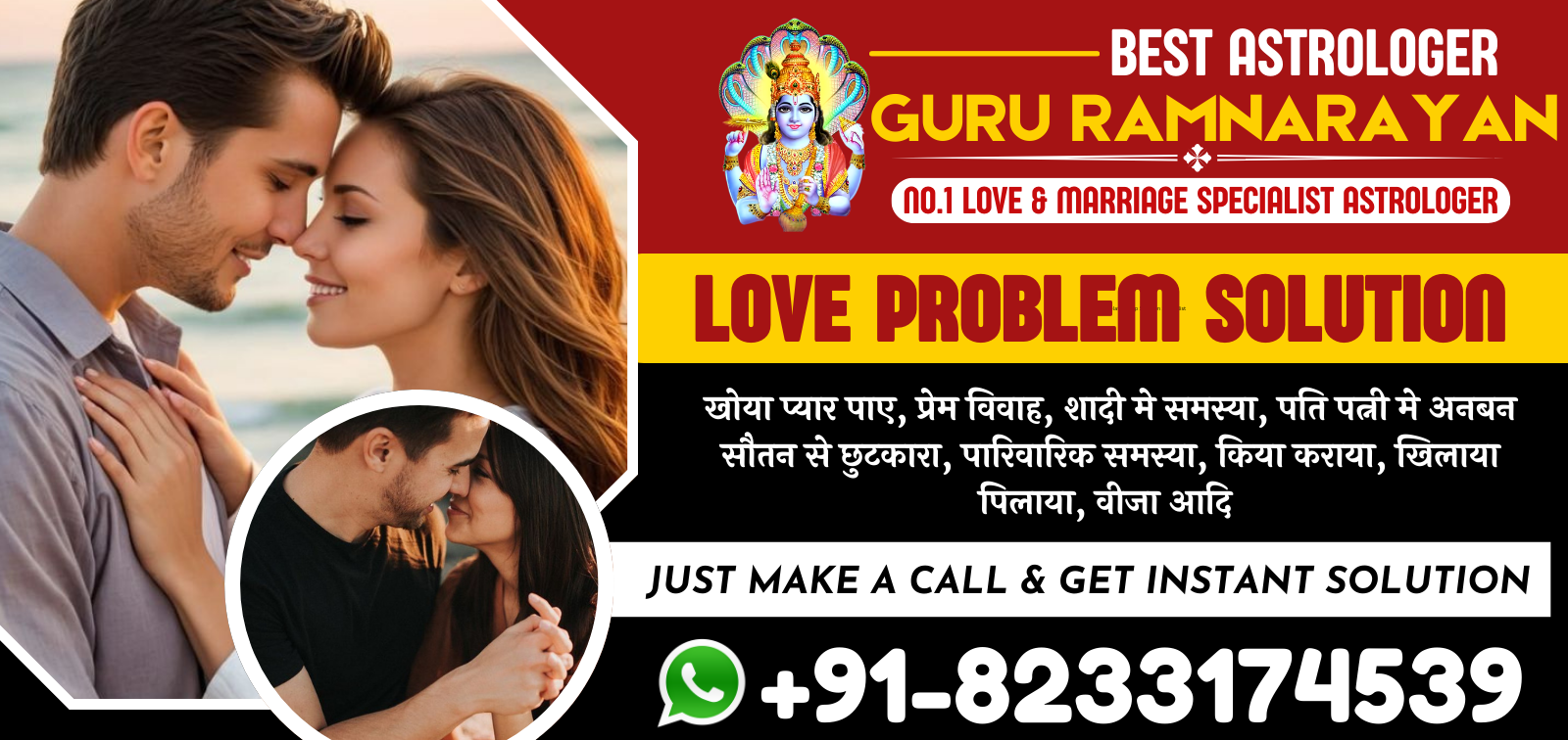 A few months ago, my relationship was on the brink of collapse. My partner and I had grown distant, and no matter what I tried, nothing seemed to bring us back together. I was heartbroken and desperate to save our relationship, so I began searching for a solution. A friend recommended consulting a Love problem specialist, and after some research, I came across Guru Ramnarayan Ji, who was highly regarded for his expertise in the field. Even though he was based in India, I decided to reach out to him for help. I contacted him at +91 8233174539, and after listening to my situation, he assured me that he could help restore harmony in my relationship. He performed specific astrological rituals and provided me with powerful mantras to recite. Within a few weeks, I noticed a significant change in my partner's behavior. The love and affection that had once faded began to rekindle, and our bond grew stronger than ever.